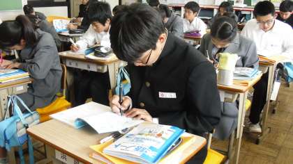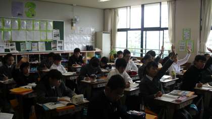 2年1組 英語の授業です。未来形「be going to +動詞の原形」の勉強をしました。授業を参観したときには、未来のことを言うときによく使われる「来週」「明日」などの語句を確認していました。