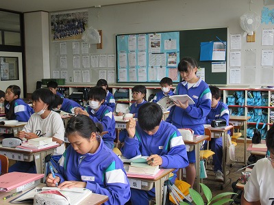2年3組 国語の授業です。安岡章太郎の「サーカスの馬」を読んでいます。今日は、登場人物「僕(安岡)」の思い違いを、全体を通して対比しながら読み取り、まとめていきました。今日の振り返りを紹介します。ますます読み深めたい気持ちが伝わってきます。