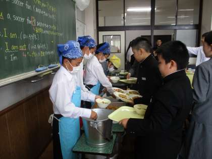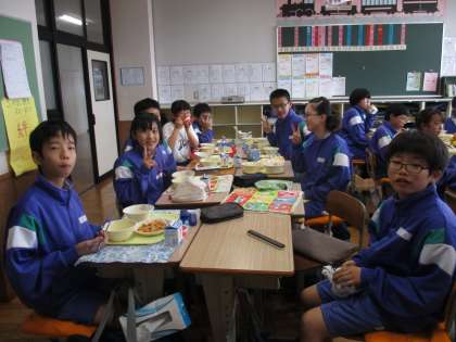 写真は、1年2組 1年4組の給食時間です。
