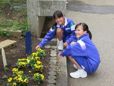 福祉委員とボランティアの生徒が、花摘み、草取りをしていました。