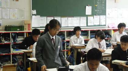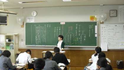授業の最後には、今までに一番心に残っている言葉を個々にノートに書きました。「初志貫徹」などことわざを書いている生徒がいる一方、妹が母親に言った「お母さん、お姉ちゃんを産んでくれてありがとう」という一言を書いている生徒もいました。
