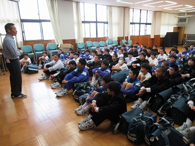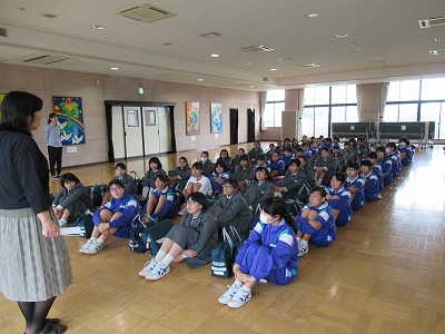 今日の5時間目は事前指導を行いました。最初は全体で、後半は男女別に行いました。