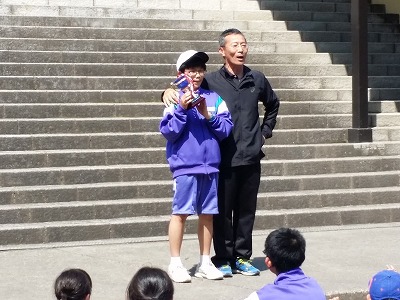 退所式前に、レクレーション総合優勝のクラスにカップが手渡されました。今回の学年優勝カップは4組でした。
