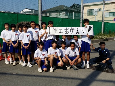 東門のところで男子バスケット部が、テニスコート横ではソフト部が1年生の到着を温かく出迎えてくれました。感動的なシーンでした。到着の安堵感と先輩方の優しさに心が和み、癒やされた場面でした。