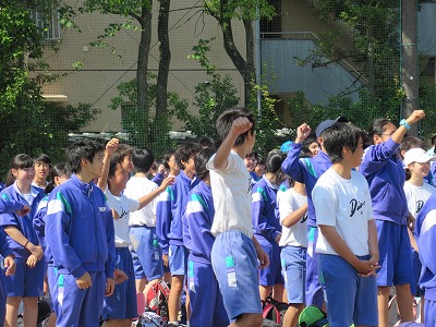 1年生のメッセージに対して、2年生校舎側1年生の階に向かって「ありがとう! 行ってきます!」と大きな声で自分たちの気持ちを届けます。