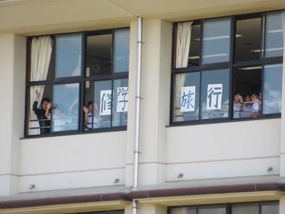1年生、2年生に手を振っています。