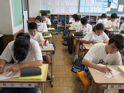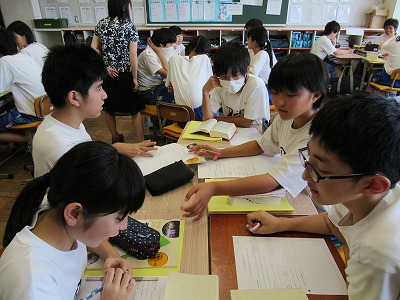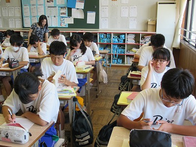 2年3組 言語読解の授業です。表現を磨く単元です。三行詩に挑戦します。テーマは「家庭で話そう!我が家のルール・家族のきずな・命の大切さ」です。今日は、テーマに関わるよい言葉を集めることから始め、自分なりの表現にまとめていきました。