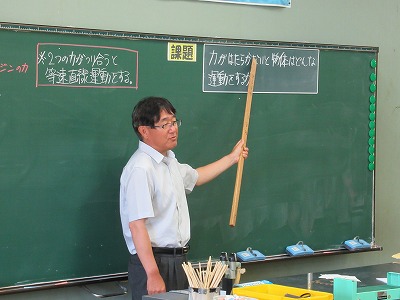 3年2組 理科の授業です。これまでは力が働いている場合の運動について学んできましたが、今日は「力がはたらかないと物体はどんな運動をするか。」を考えていきます。