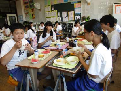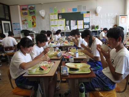 写真は、3年2組の給食時間です。