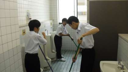 第五中では、週3回朝清掃をを行っています。どの生徒も黙働に一生懸命取り組んでいます。場を清め、心を整え、1日のスタートです。