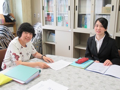 今週の月曜日(6/5)から教育実習生が来ています。本校卒業生の沼田麻佑先生です。実習の期間は3週間(6/23まで)で、クラスは1年3組に入ります。教科は国語です。部活動は、小中高大と続けてきたバレー部に所属します。