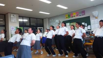 陸上部は一足早く土曜日から中体連が始まります。陸上部を応援しようと、3年学年委員会が昨年の応援団に声をかけて準備をしています。明日の帰りの会が本番です。今日は各クラスで練習しました。約1年ぶりの五中応援歌が響き渡りました。