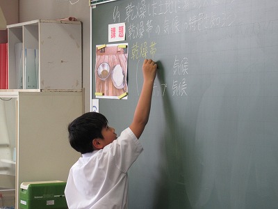 「乾燥した土地に暮らす人々」についての内容です。今日は、乾燥帯の気候の特色を学んでいきます。乾燥帯には二種類あることや、乾燥帯の食事などについて学習しました。