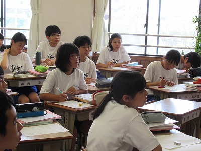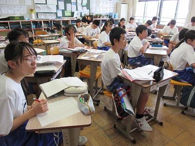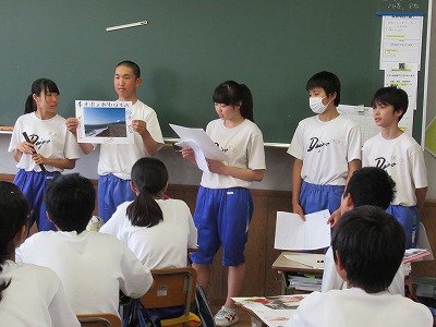 「魅力を伝えよう プレゼンテーション」という単元です。自分たちが調べてきた沼津市の魅力について、写真や資料などを使いながら発表をしています。