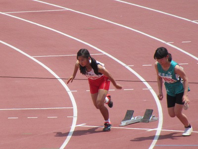 女子2年100m9組に佐藤仁美さんが出場しました。