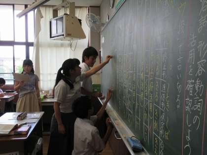 今日は、動詞の活用についての学習です。日頃使っている言葉、特に今日は「動詞」についての規則性に触れ、文法的な知識を学ぶとともに言葉の奥深さや楽しさを感じた時間となりました。
