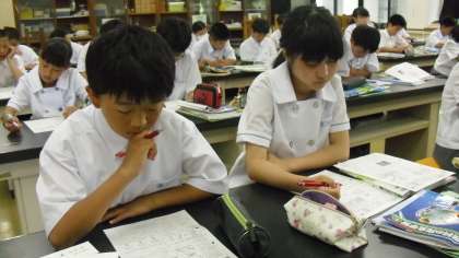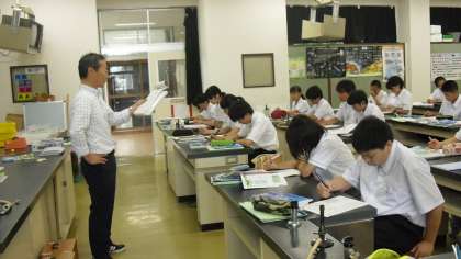 明後日の期末テストに向け、「植物の生活と種類」について、プリントを使って復習をしていました。宇野先生の解説に耳を傾け、必要に応じてメモをとり、より確かな理解につなげていました。