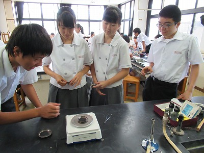 今日の課題は「銅と酸素が化合するとき、その質量の変化に規則性はあるのか。」です。銅の量を0.2g、0.4g…と増やしながら実験をして質量をはかっていきます。「増えてる!」「変わってないような…」「え?減ってる?」など、さまざまな結果の声が聞こえてきました。さてさて、本当のところはどうなんでしょうか!?