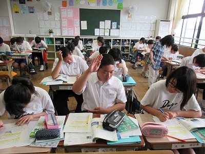 今日は、日本の火山について発表している「桃子のスピーチを聞き取ろう!読み取ろう!」という内容です。「the highest」「over 300」「more than 100」「large number」など、ポイントとなる表現が出されています。