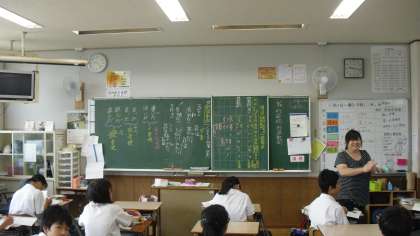 形容詞・形容動詞の活用(未然・連用・終止・連体・仮定・命令)を学習していました。想起しやすいよう、ラップのようにリズムをとり工夫して覚えていました。授業後も友だちと覚えたことを言い合い、復習している姿が印象的でした。
