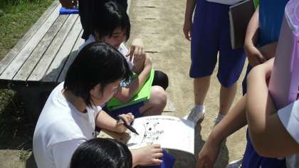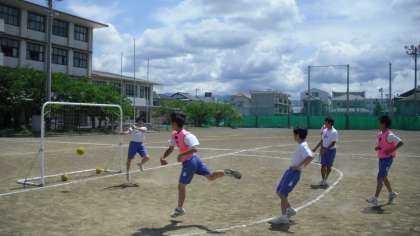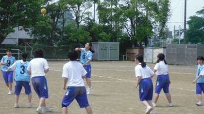 ハンドボールの授業です。参観したときにはチームごとに作戦会議を行っていました。作戦ボードを使い、オフェンス・ディフェンスごと、チームとしての意思統一を図っていました。その後試合に移り、コートの中で実践してみました。