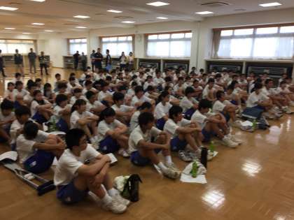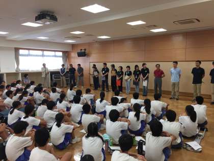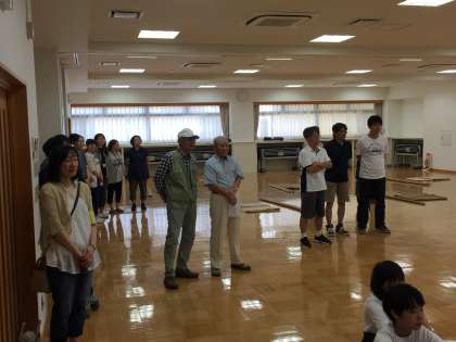 本校2年生が、危機管理課や救急ワークステーションの方々の指導の下、地区センター会議室で三角巾や簡易担架の講習を、体育館で救急救命法の講習を受けます。救急時に率先して動くことができる地域の担い手を育てます。