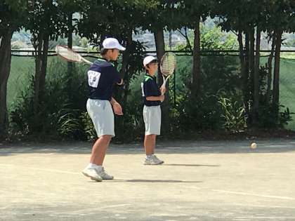 本日、男子ソフトテニス部は今沢中に練習試合に来ています。