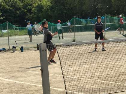 本日、男子ソフトテニス部は今沢中に練習試合に来ています。