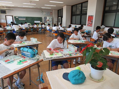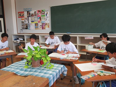 今日の課題は「どうすれば立体感を色で表現できるだろう」です。自分の描きたい植物・物の周辺で描いています。同じ対象でも、それぞれの場所から少しずつ見え方が違います。よく観察し、今日は特に、ものの色を強く感じるところや影などを意識し、色を重ねながら描いています。