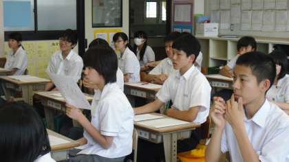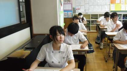 先日行われた期末テストが返却されました。石井先生の解説を聞き、間違いを直していました。