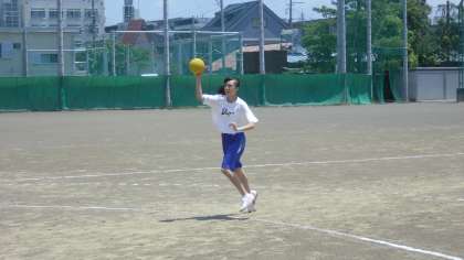 今日は、ハンドボール、ジャンプシュートのテストです。ハンドボールの歩数制限は3歩まで。ジャンプしてキャッチした場合、着地した足は0歩。多くの生徒が、歩数を確認しながら手首を使いシュートすることを心がけているように見えました。