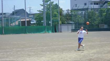 今日は、ハンドボール、ジャンプシュートのテストです。ハンドボールの歩数制限は3歩まで。ジャンプしてキャッチした場合、着地した足は0歩。多くの生徒が、歩数を確認しながら手首を使いシュートすることを心がけているように見えました。