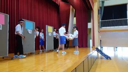 また、今年度は学年によってクラス数に違いがあるため、ここ数年行っていた縦割り色別対抗ではなく、抽選で新しい組み合わせ(ファミリー)を決めて、ファミリー対抗にすることが決まりました。写真はその組み合わせ抽選会の様子です。