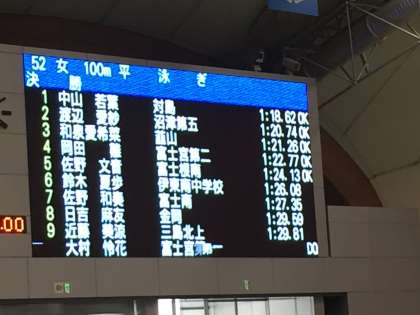 本校3年生、渡辺愛紗さんが女子100m平泳ぎに出場し、第2位に入賞しました。県大会出場です。