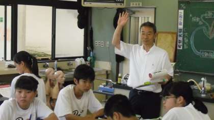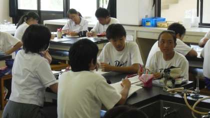 今日の授業は、『動物の生活と生物の進化』についてのプリントの答え合わせです。参観したときには、生物の体のつくりや、細胞でエネルギーが取り出されるしくみを全体で確認し合っていました。