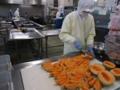 とうもろこしは、ゴールドラッシュという品種です。実を削いで、みそ汁に入れました。果物は、赤肉系の「レノンメロン」です。