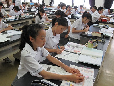 「動物の生活と生物の進化」について復習を兼ね、学習診断のプリントに取り組んでいます。