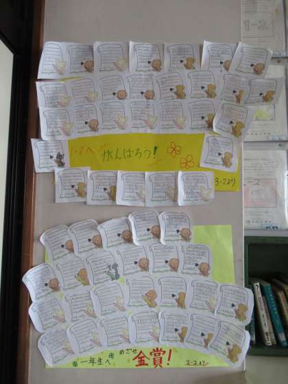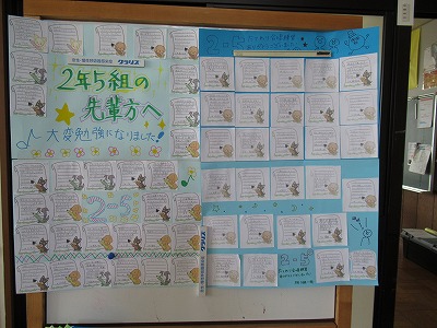 ファミリー間で応援のメッセージカードが交換されているようです。あちらこちらで見かけました。一部を紹介します。読んでいると温かい気持ちになります。