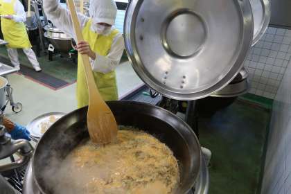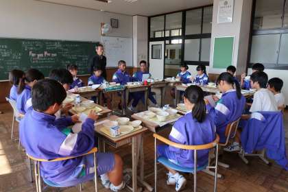 3枚目の写真は、1年生の学年委員会会議です。毎週金曜日の給食時間に開催されます。「食事をしながらの会議は、なごやかにすすみますよ。おいしいものを食べているとみんな笑顔になりますもんね。」と学年主任の宇野先生が教えて下さいました。