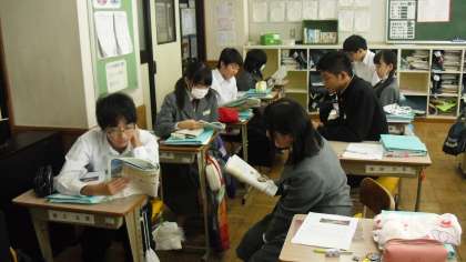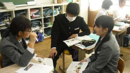 教科書プログラム6−2を学習していました。内容は現在完了形の経験用法です。本文はけん玉について書かれたものですが、参観したときには、登場人物YUKIのけん玉についての考えを文のルールを確認しながら読み取っていました。