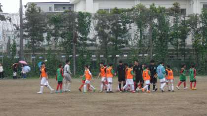 本日、本校南グランドでサッカー1年生大会が行われました。試合時間は25分のハーフタイム。第五中は第二中、今沢中との合同チーム、対戦相手は静浦中、第三中との合同チームです。オレンジのビブスを着ているのが、第五中、第二中、今沢中のチームです。 両チームともに、合同チーム故の難しさがあったと思いますが、グランドを所狭しと思いっきり走り回り、一生懸命プレーしていました。