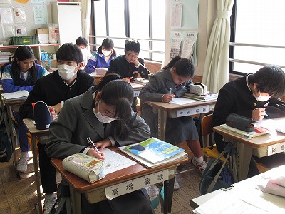 今日は保健分野「自然災害による障害の防止」についての学習です。自然災害には、どのようなものがあるのか。災害が発生したときには、どのような行動をとるのか、必要なことはどんなことかなどを確認していきました。参観したときには、防災用具について、家庭で準備しているか。また、どんなものを準備しているかを質問しているところでした。