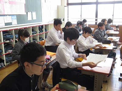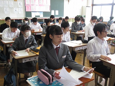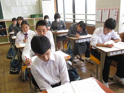 この教室でも先週の実力テストが返されていました。参観した時は、解説をしているところで、解答の仕方などのアドバイスもされていました。