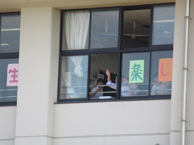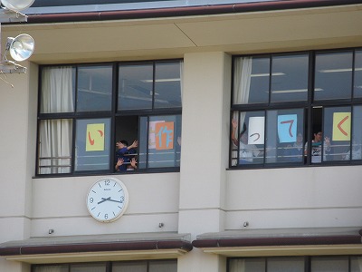 1年生のメッセージについて宇野先生から話があった後、皆で1年生の教室に向かって、大きな声で「行ってきま〜す!」と叫びました。