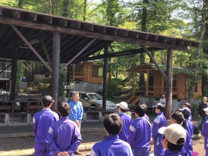 湖山荘キャンプ場に到着しました。入所式の様子です。