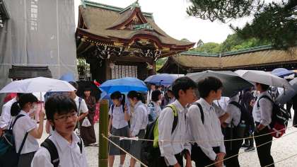 1組 北野天満宮での様子です。今から昇殿参拝です。