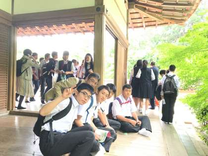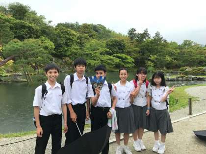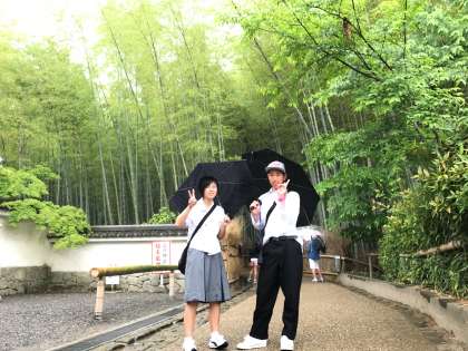 4組は竜安寺から天龍寺へ行き、竹林の小道を歩いています。もうすぐお昼です!