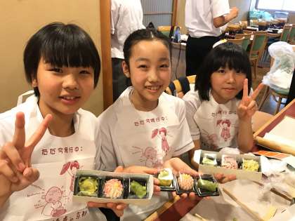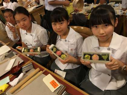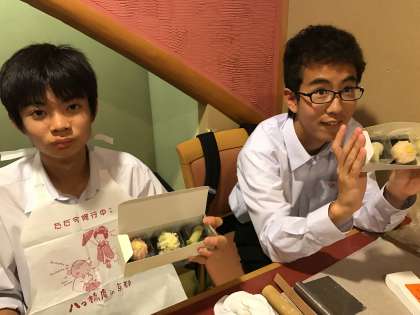 和菓子完成です!上手にできました!4組はこれから北野天満宮へ向かい、昇殿参拝していただきます。