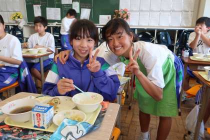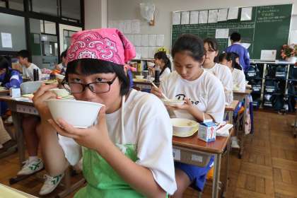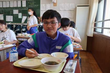 1年4組の給食時間の様子です。