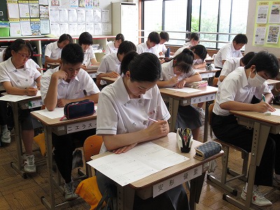 今日は、「多項式」の単元テストを行いました。皆、テストに真剣に臨んでいました。